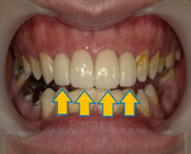 施作位置 | 右上側門牙 | 左上犬齒 | 右上犬齒~左上犬齒 |